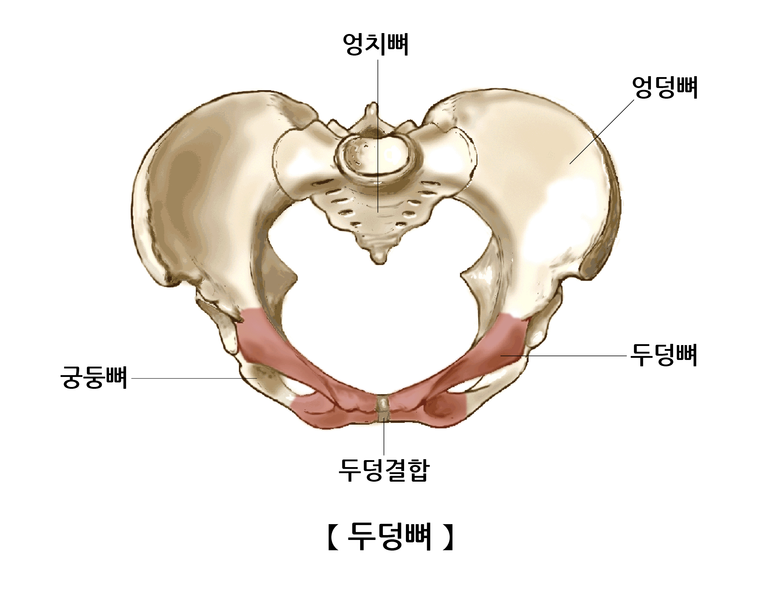 골반의 앞쪽에서 좌우의 두덩뼈가 결합되는 부분을 두덩뼈결합(치골결합)이라 하는데, 이를 통해 좌우 볼기뼈가 서로 결합합니다. 두덩뼈결합은 섬유성 연골판 조직으로 이루어져 있습니다. 두덩뼈결합은 평소에는 1~2mm의 간격으로 유지되었다가 임신 중에는 자궁 크기의 변화로 인해 3~7mm까지 증가할 수 있습니다.