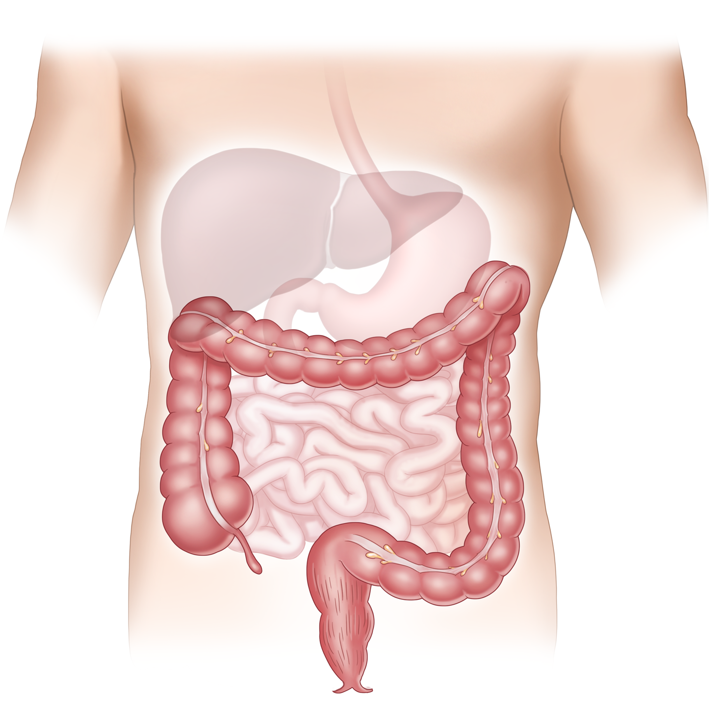 소화기 중에 마지막에 위치하며 1.5미터 길이의 관 모양의 장기입니다. 대장은 막창자, 결장, 직장으로 분류되며 소화되지 않은 음식물로부터 수분을 흡수하고 찌꺼기는 보관하여 대변 형태로 몸밖으로 배출하는 역할을 합니다.