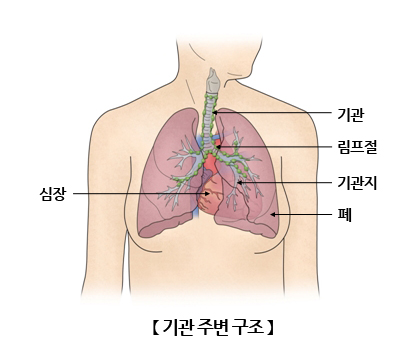 후두와 기관지를 연결하는 관 모양의 구조물로서, 공기의 유입과 유출이 이루어질 뿐만 아니라 기관지 속 분비물을 배출하는 통로가 되기도 합니다.