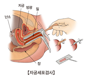 우리나라에서 30세 이상의 여성에게 자궁경부암 검사를 무료로 실시하고 있습니다. 자궁경부암 검사는 다른 말로 자궁경부세포진검사(Pap smear)라고 합니다. 자궁경부암 검사는 질경을 질 내부로 삽입하여 자궁경부를 노출시킨 다음 작은 면봉을 이용해 자궁경부 표면의 세포를 채취하여 현미경으로 세포 이상 유무를 확인하게 됩니다. 간단하게 수행할 수 있는 비침습적인 검사이며, 생리기간에는 검사를 피하는 것이 좋습니다.