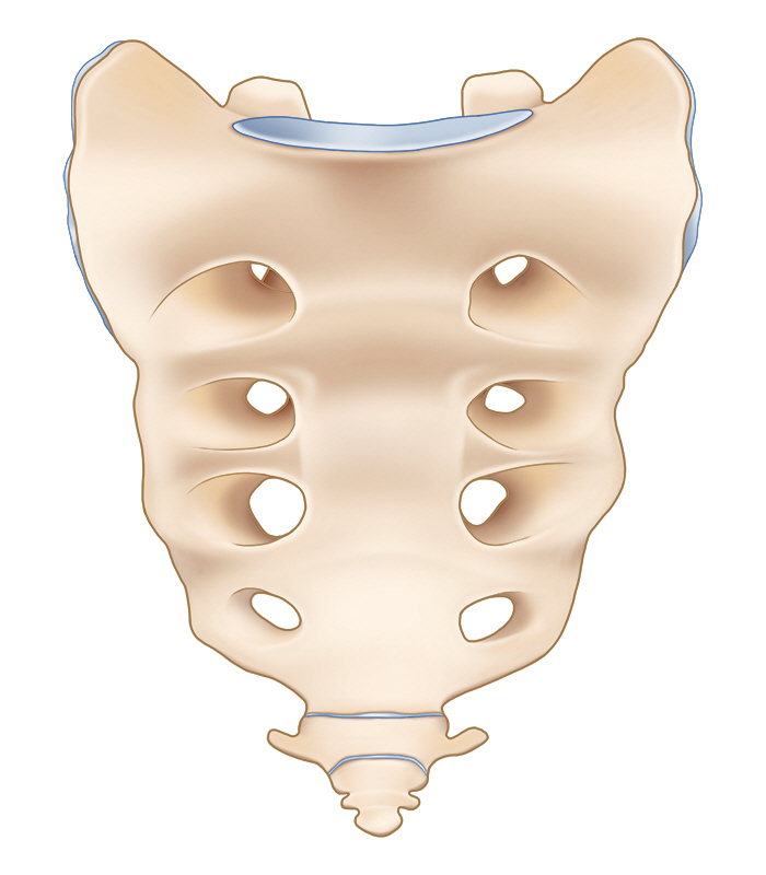 다른 척추뼈에서 나타나는 특징적인 구조들이 거의 나타나지 않지만 바로 위의 천추와 관절운동을 하기도 합니다.
