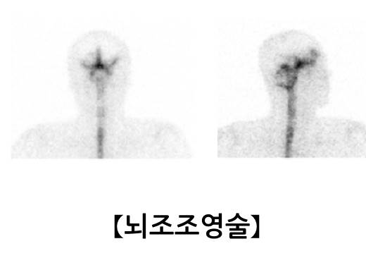 뇌조조영술은 요추 4~5번 사이의 천자를 통해 방사성 동위원소를 척수강내로 주입한 후 감마카메라로 촬영하여 뇌척수액의 흐름과 단절을 확인하는 검사입니다.