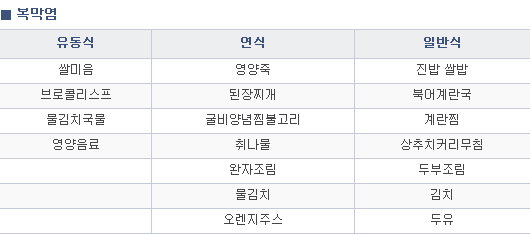 부드럽게 조리한 육류 및 생선류, 섬유질이 적은 채소, 연한 과일 및 주스